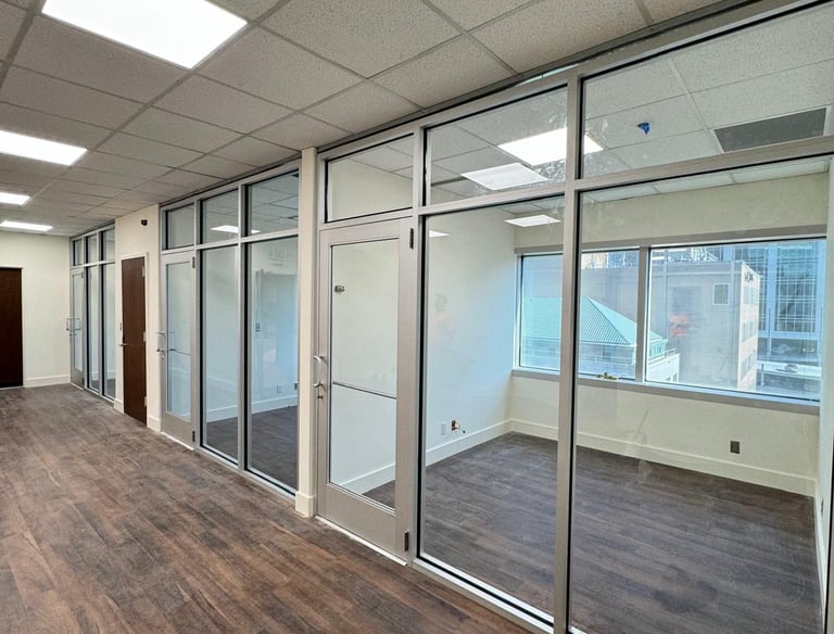 Functional glass divisions that improve lighting, space distribution, and productivity.
